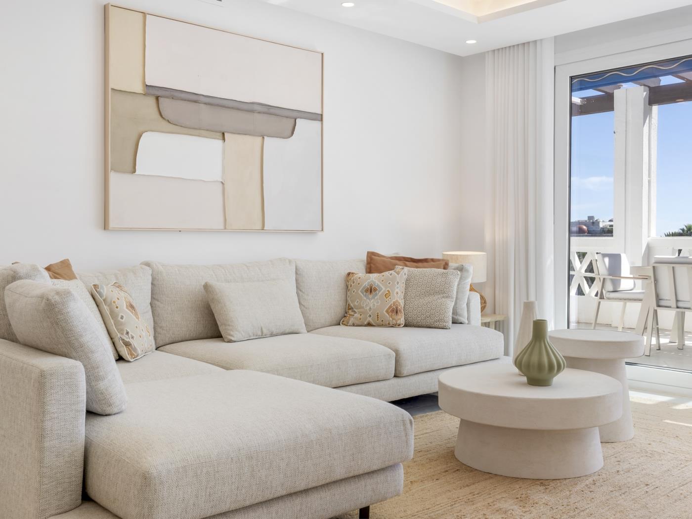 Bright 3-bedroom, 3-bath apartment in Playas del Duque with a spacious terrace and sea views.