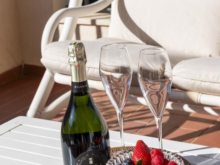 Cet appartement, pouvant accueillir deux personnes, est décoré dans un style chaleureux. Le salon lumineux dispose d’une salle à manger et d’un accès direct à une grande terrasse de 26 mètres carrés, parfaite pour se détendre et profiter du climat méditerranéen. La terrasse orientée sud-ouest est entièrement meublée et offre des vues spectaculaires. La cuisine est équipée pour répondre à tous vos besoins. L’appartement comprend également la climatisation, la télévision et le WiFi fibre optique. Situé au premier étage, la propriété dispose d’une place de parking privée.