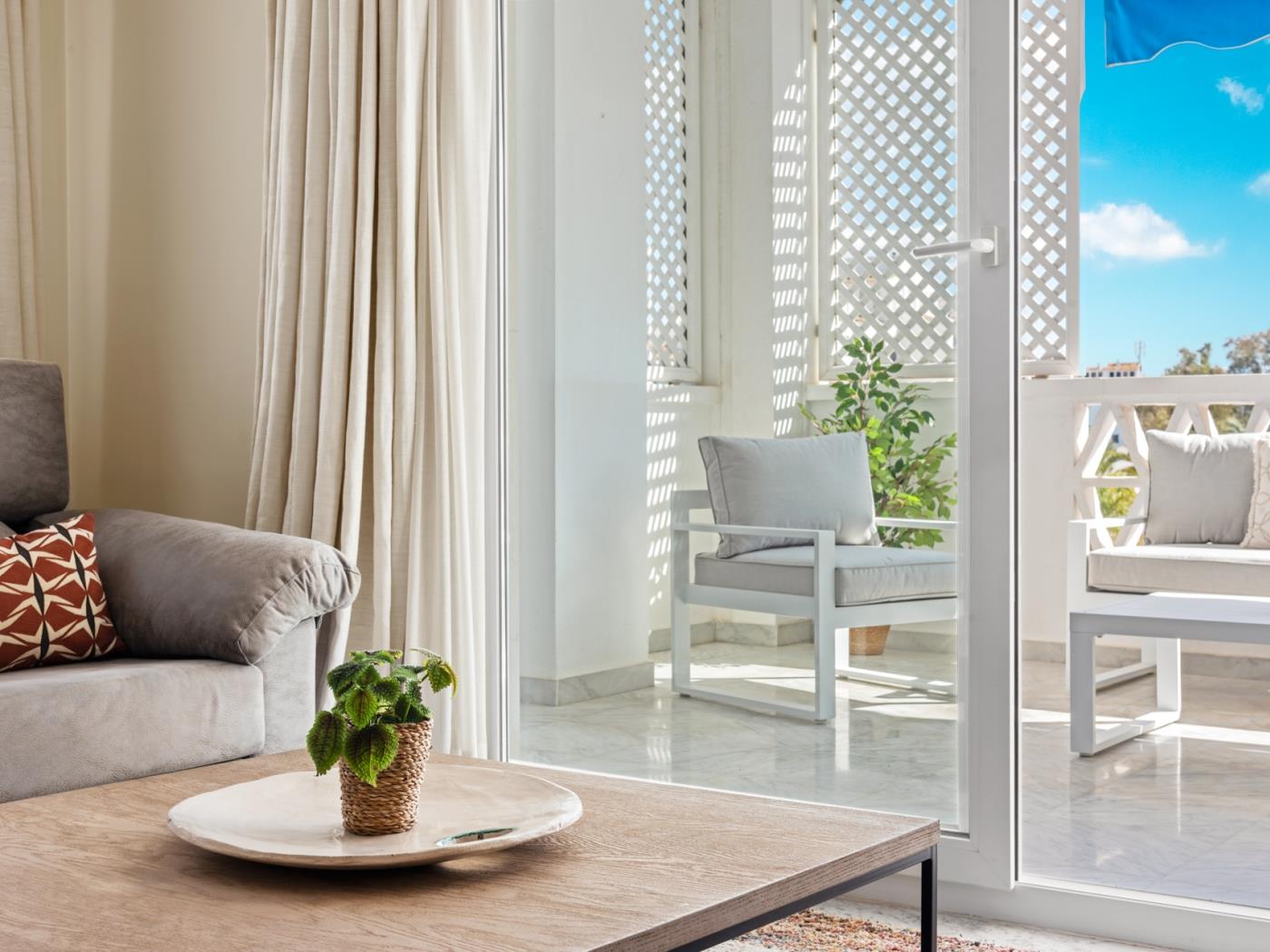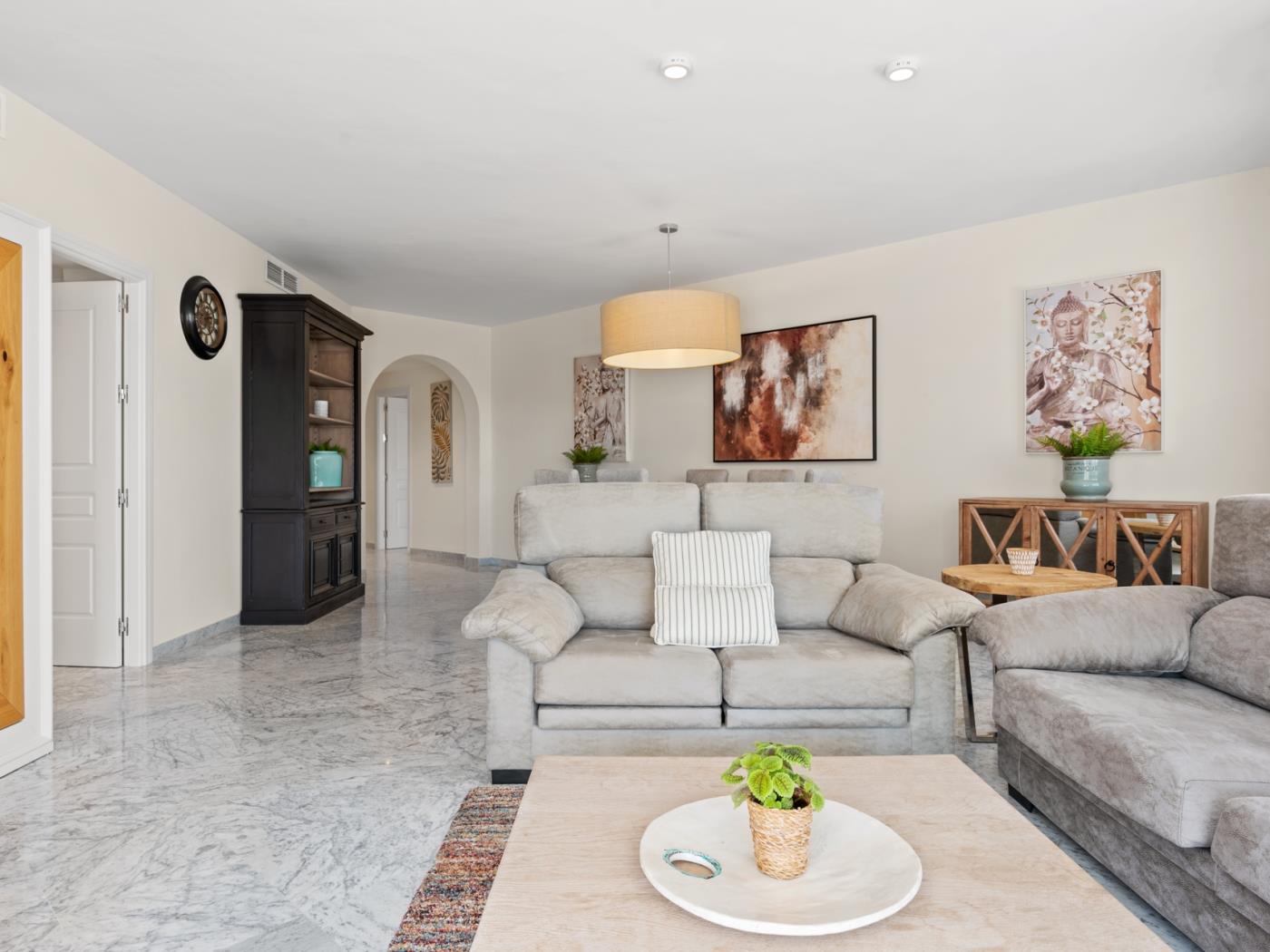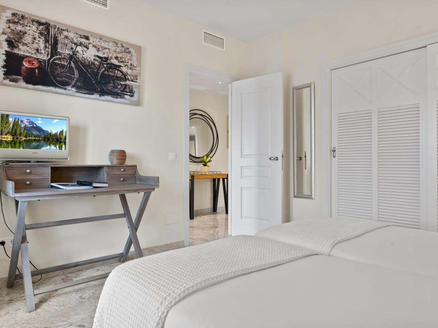 Cet appartement de 128 m² dispose d’un salon-salle à manger spacieux et lumineux avec accès direct à une grande terrasse, idéale pour profiter du climat de Marbella. Il offre deux chambres : une chambre principale avec un lit double et une autre avec deux lits simples, ainsi que deux salles de bains complètes. La cuisine est entièrement équipée pour préparer vos repas préférés.