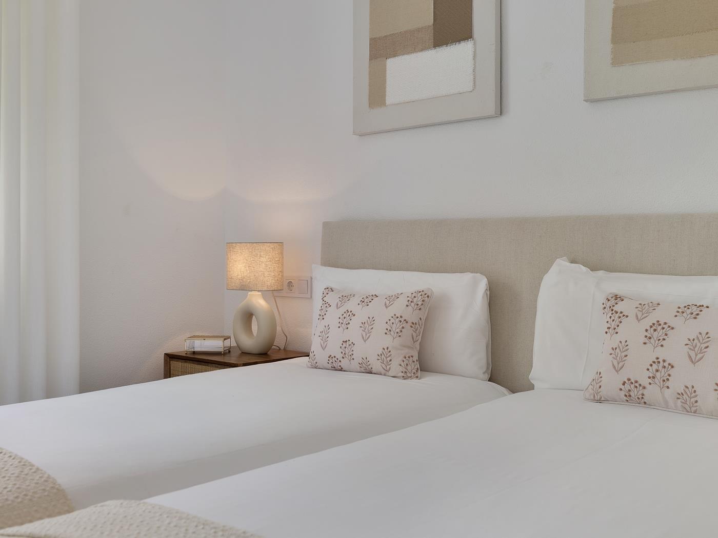 - Deuxième chambre: 2 lits simples (90 cm x 190 cm) avec une salle de bain séparée