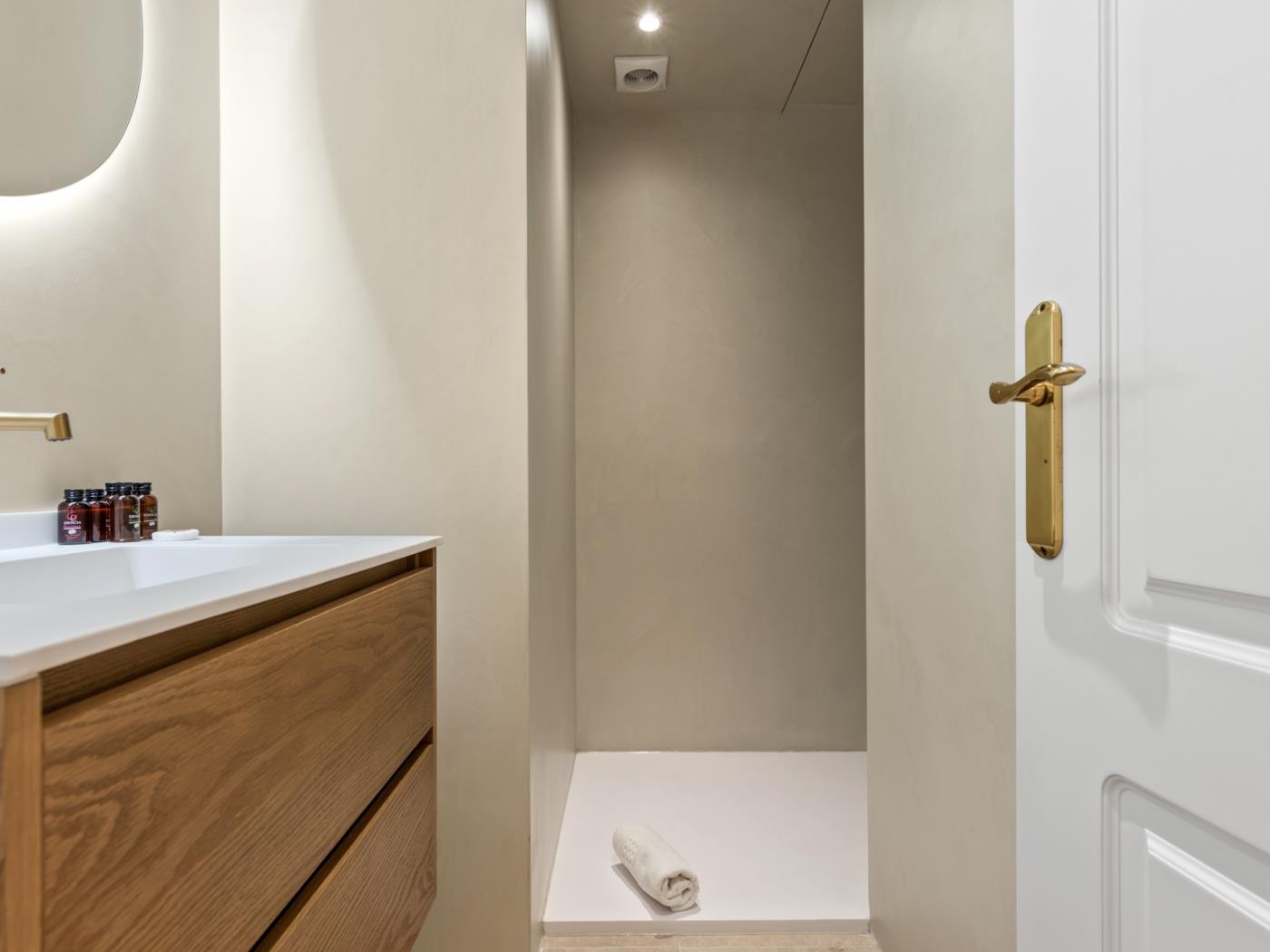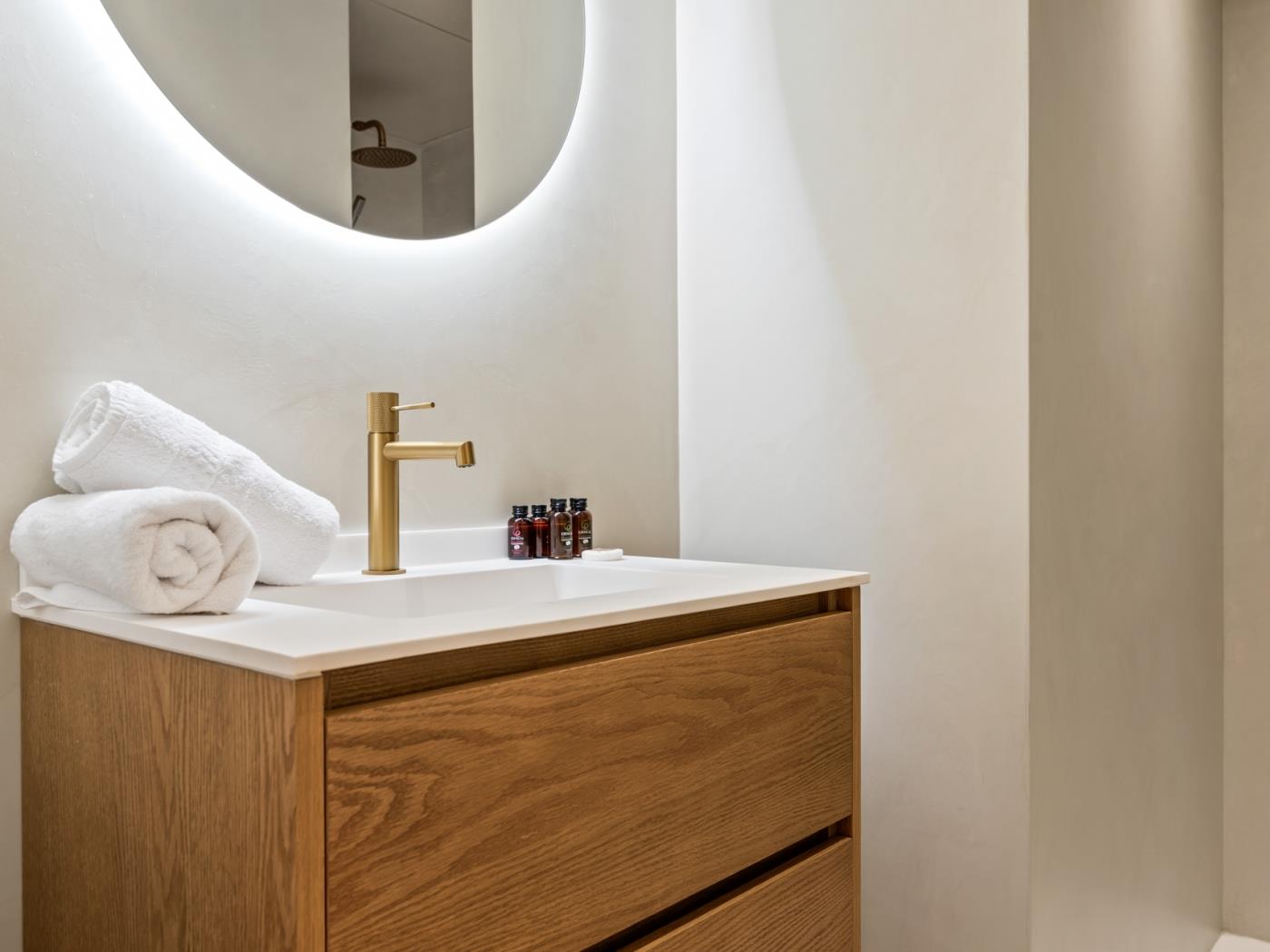 - Chambre principale: Lit double (180 cm x 200 cm) avec salle de bain en suite et accès direct à la terrasse