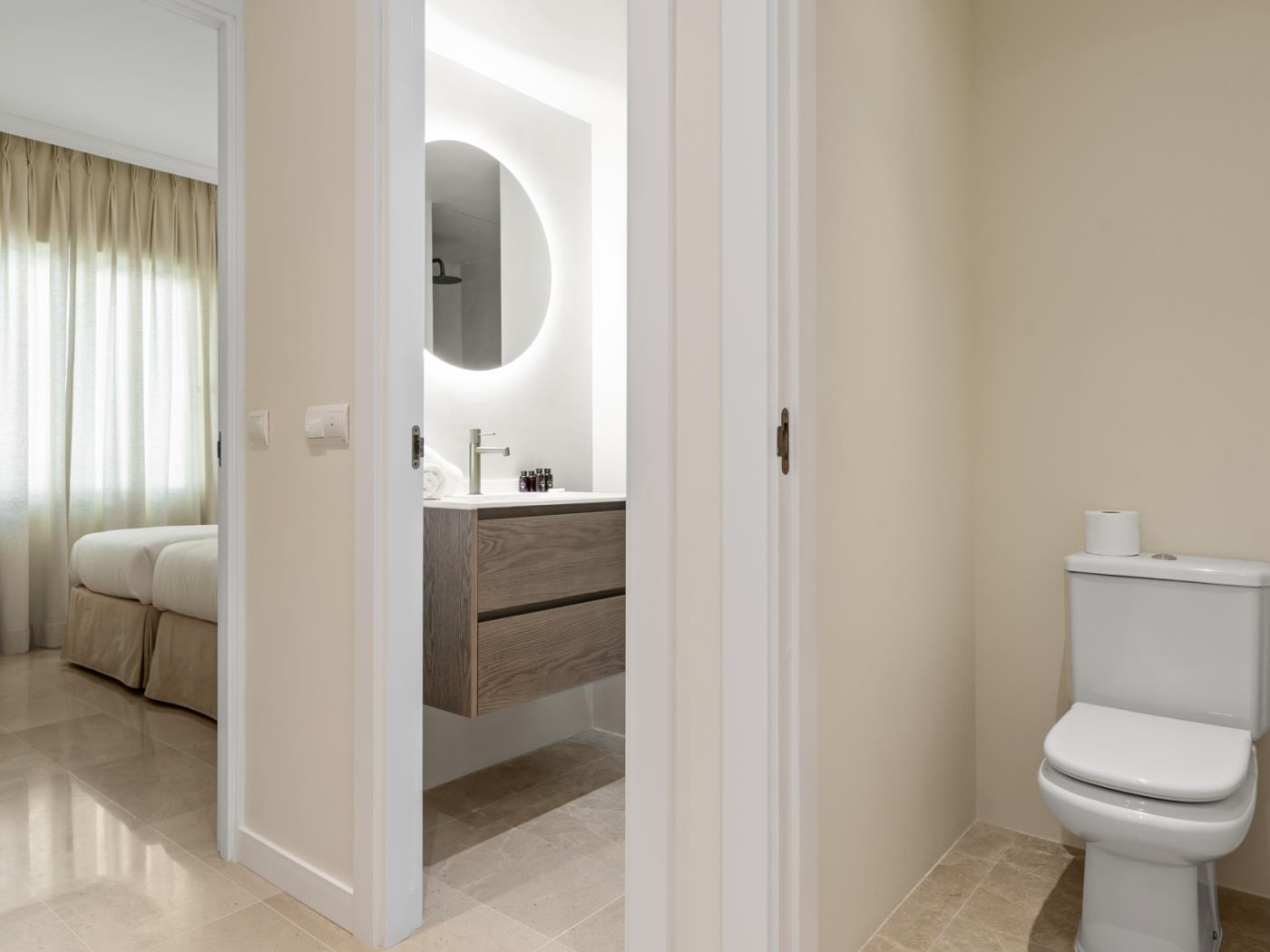 - Deuxième chambre: 2 lits simples (90 cm x 190 cm) avec salle de bain séparée