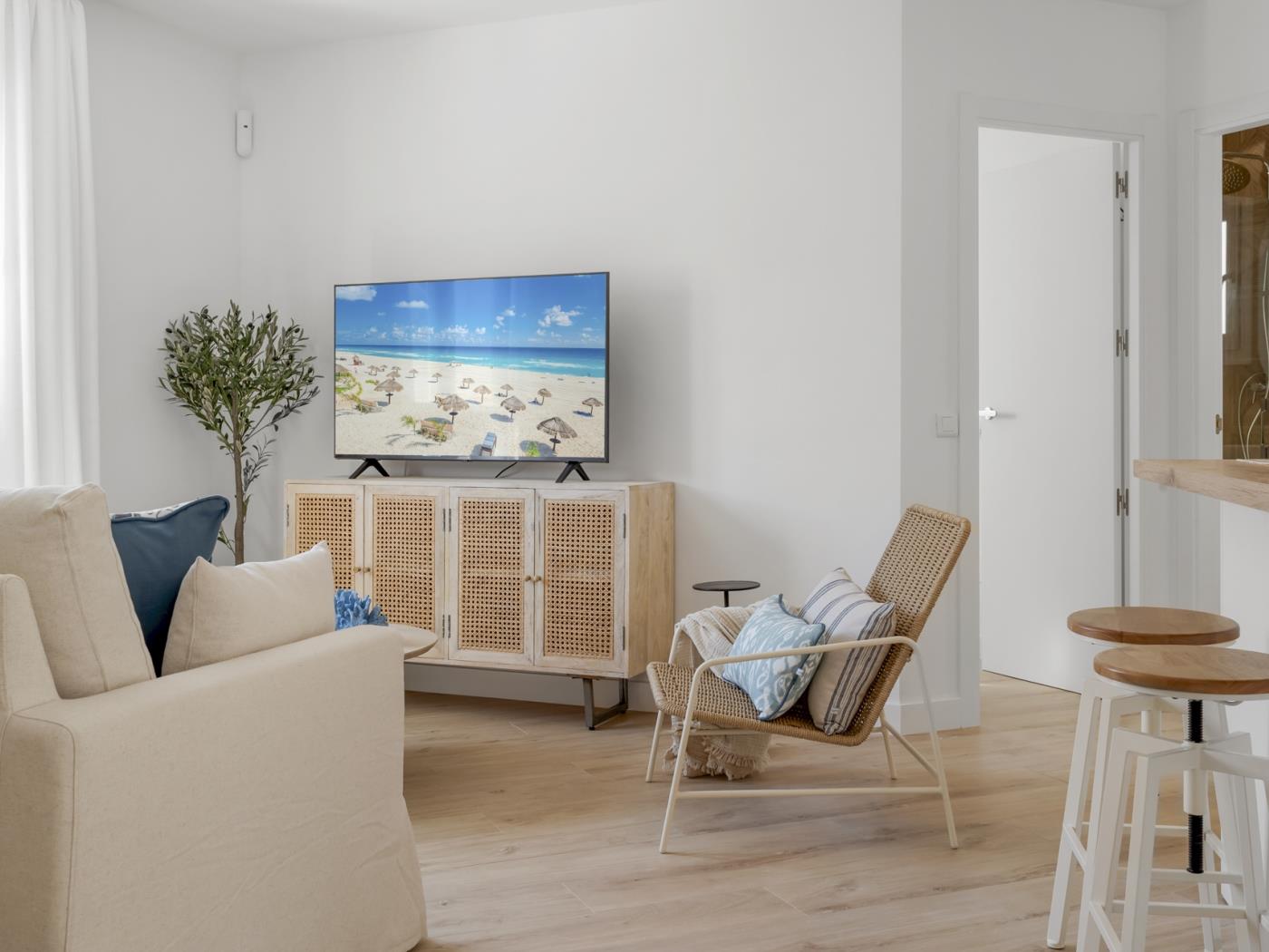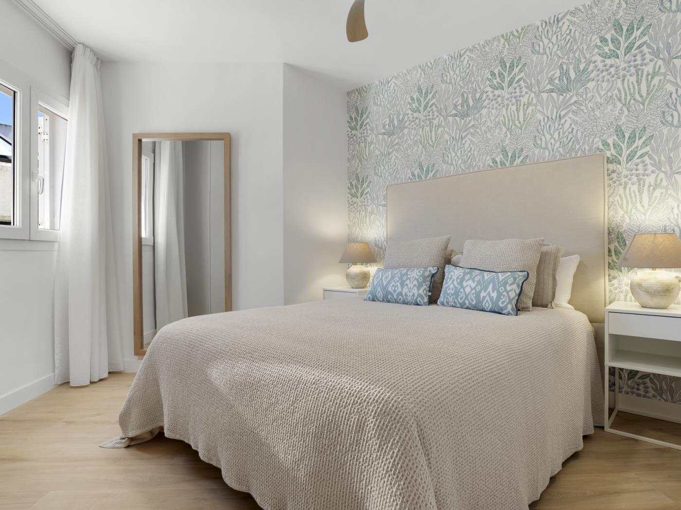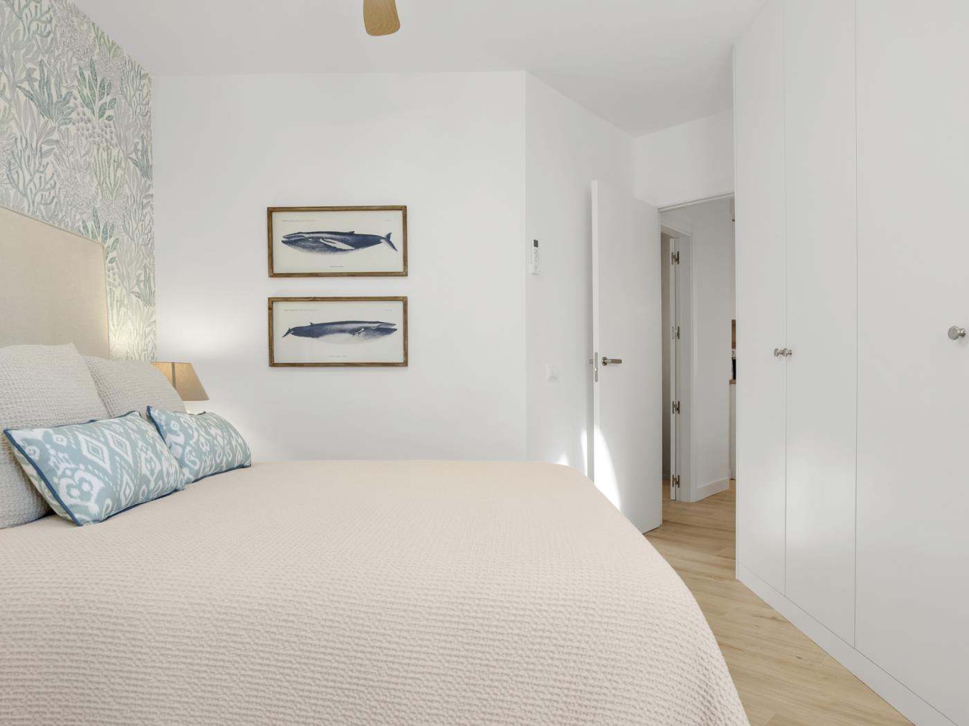 Récemment rénové, l’appartement présente une décoration d’inspiration méditerranéenne, avec des tons neutres et des matériaux naturels qui apportent chaleur, fraîcheur et sérénité. L’espace de vie décloisonné relie harmonieusement la cuisine et le salon, créant un lieu confortable et fonctionnel – idéal pour se détendre après une journée ensoleillée ou explorer les environs animés.