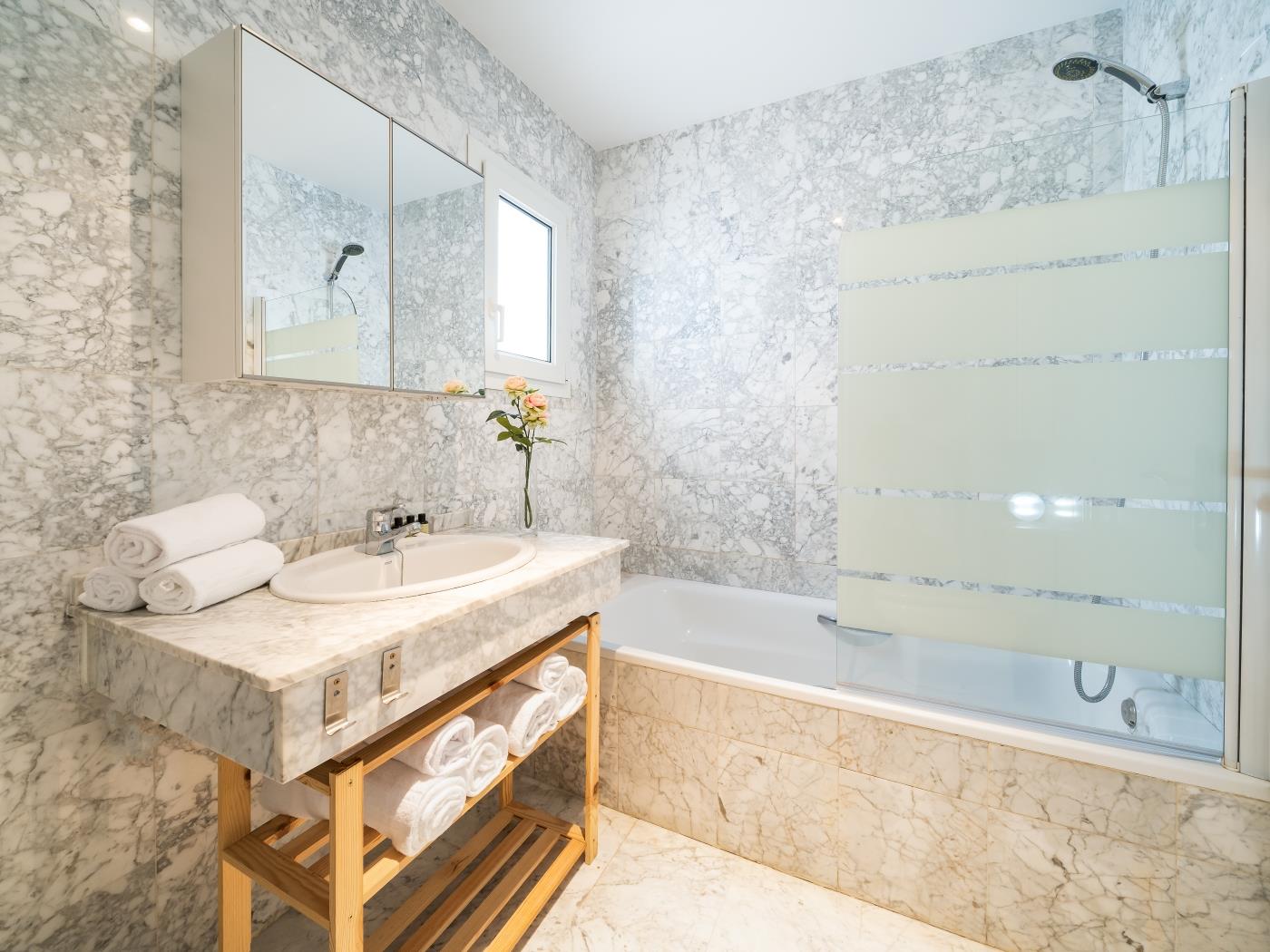 Cet appartement de 116 mètres carrés, situé au deuxième étage, dispose d’une grande terrasse avec une salle à manger et une zone chill-out, idéale pour se détendre et profiter des vues sur la montagne et les jardins. L’intérieur comprend un salon-salle à manger spacieux et lumineux avec un accès direct à la terrasse, une cuisine entièrement équipée et une décoration moderne qui crée une ambiance chaleureuse. Avec une capacité pour jusqu’à 6 personnes, cet appartement est idéal pour des vacances inoubliables.