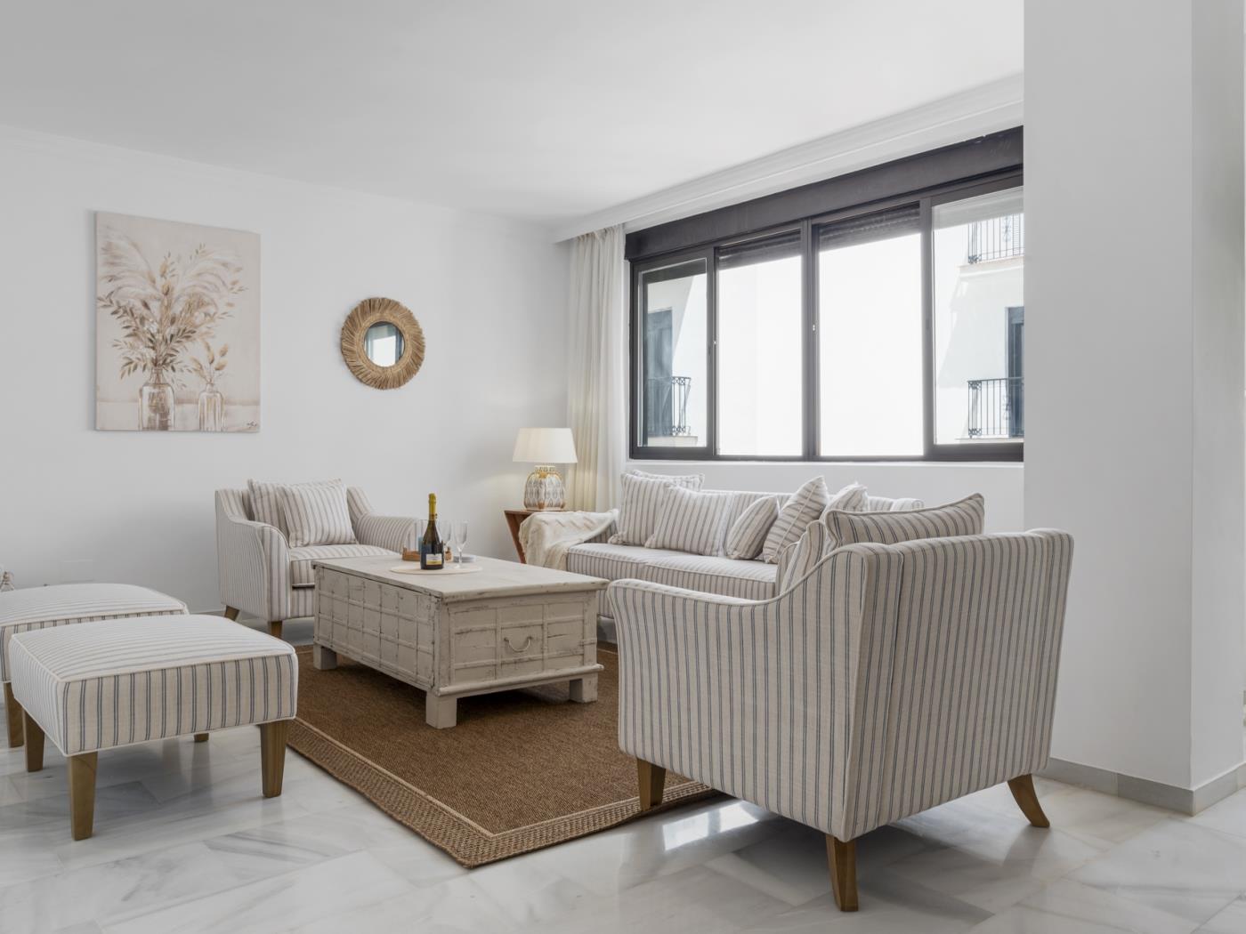 Profitez de vacances de rêve dans ce lumineux appartement de style méditerranéen situé dans la prestigieuse résidence Playas del Duque, en plein cœur de Puerto Banús. Avec une superficie généreuse de 117 m² et une capacité d’accueil de 4 personnes, cette propriété offre une atmosphère chaleureuse et accueillante, grâce à ses tons neutres, ses textiles naturels et ses détails inspirés de la mer qui transmettent calme et élégance. Le salon et les chambres ont été conçus pour allier confort et esthétique, afin de garantir un séjour inoubliable.