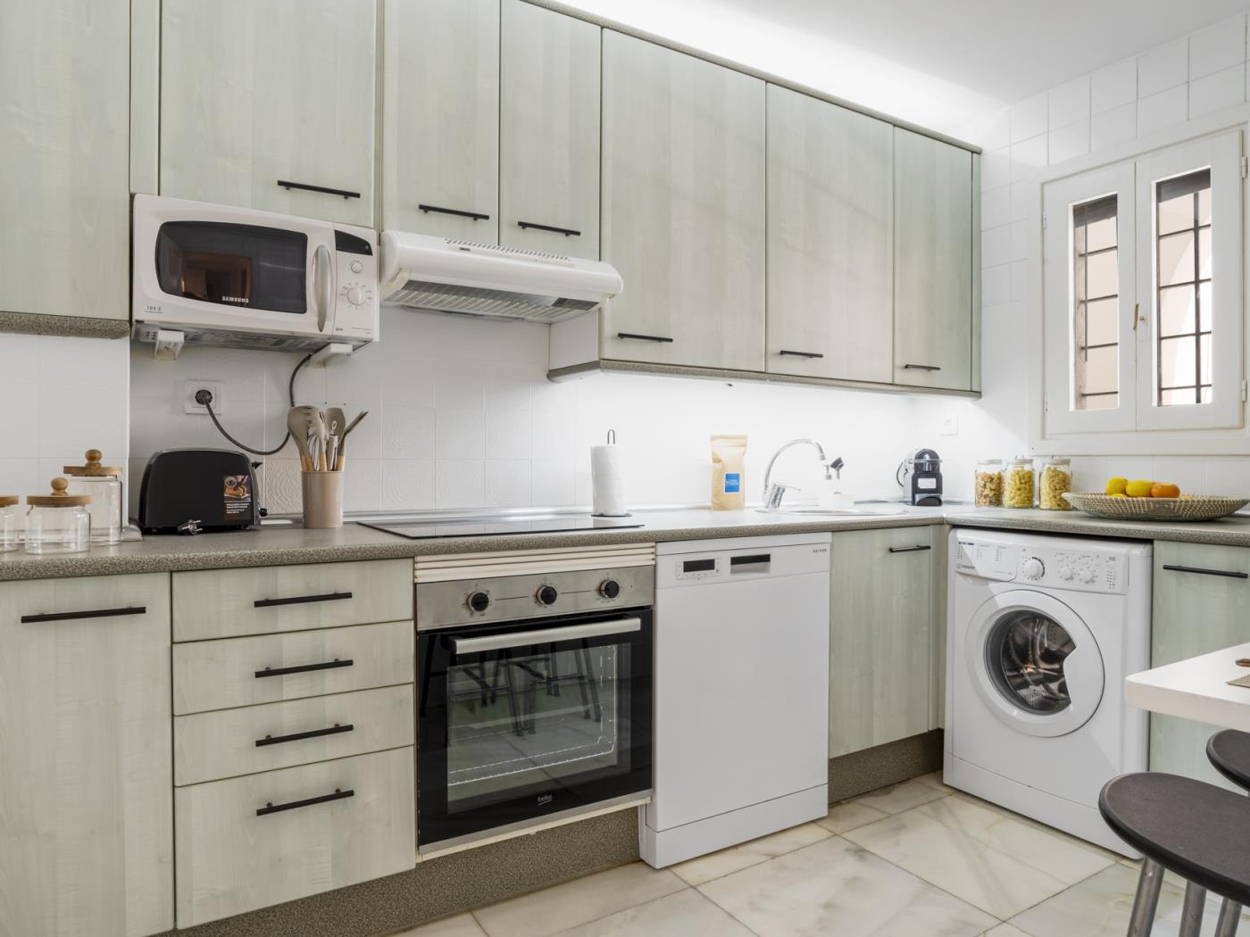 Chaque recoin de l’appartement reflète la sérénité du style andalou classique, avec un mobilier en bois blanchi, des tissus doux et un éclairage chaleureux qui créent une ambiance cosy et détendue. Situé au deuxième étage, l’appartement dispose d’un spacieux salon-salle à manger, d’une cuisine entièrement équipée, de deux chambres confortables et de deux salles de bain complètes, pour garantir intimité et bien-être.