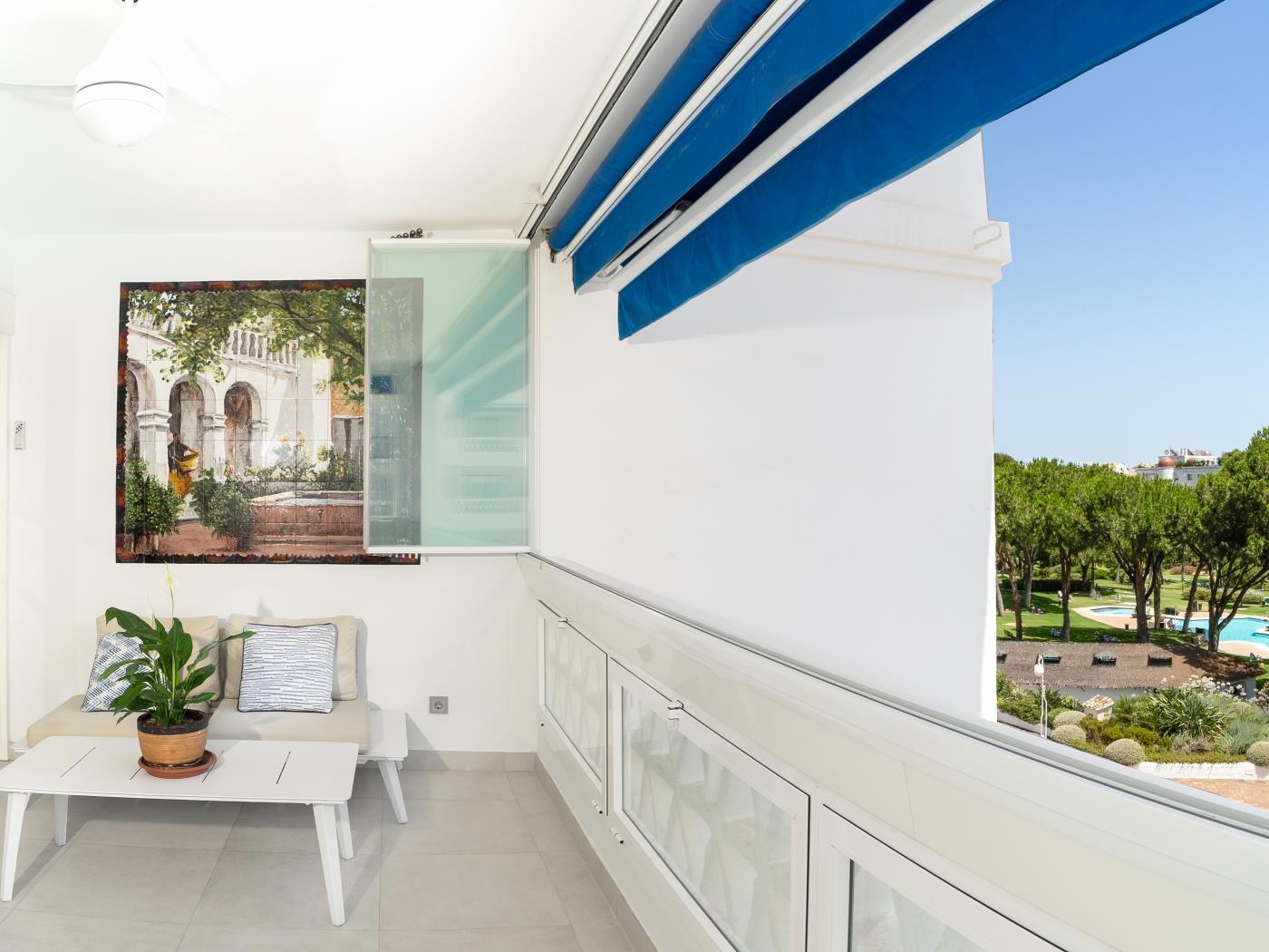 Nueva Andalucía, située à proximité, est connue comme la ‘Vallée du Golf’ en raison de sa concentration de parcours de golf de premier niveau. Les amateurs de golf peuvent profiter des prestigieux parcours tels que l’Aloha Golf Club, le Las Brisas Golf et le Los Naranjos Golf, tous à quelques minutes en voiture.