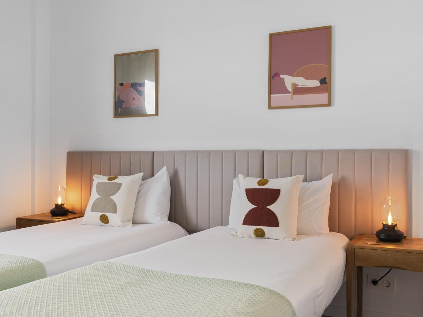La chambre principale dispose d’un lit double (160x 200 cm), d’une salle de bain attenante et d’un accès direct à la terrasse. La deuxième chambre, également équipée deux lits simples (100×200 cm), se trouve à côté d’une deuxième salle de bain complète avec douche.