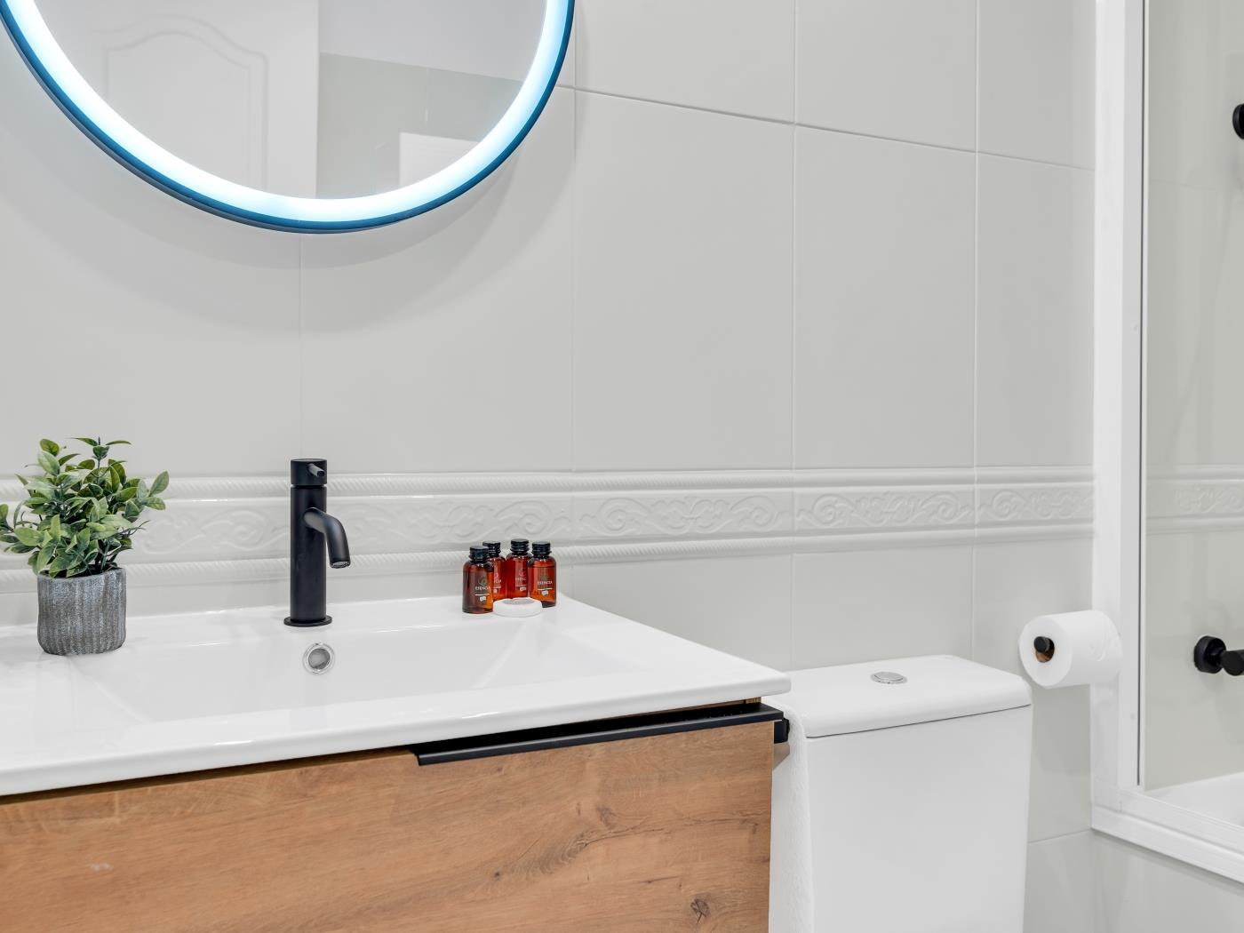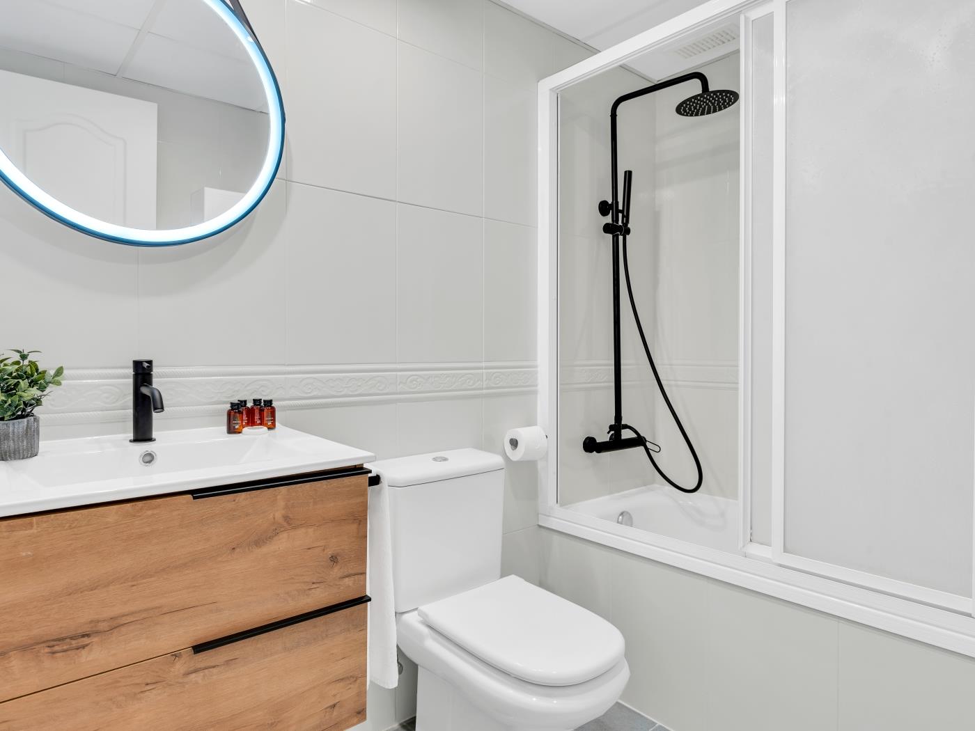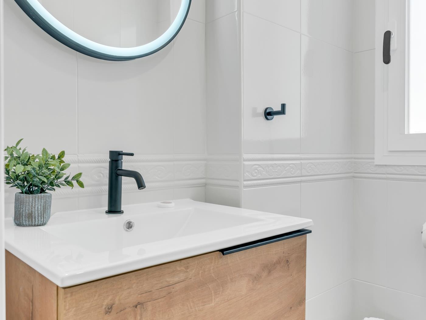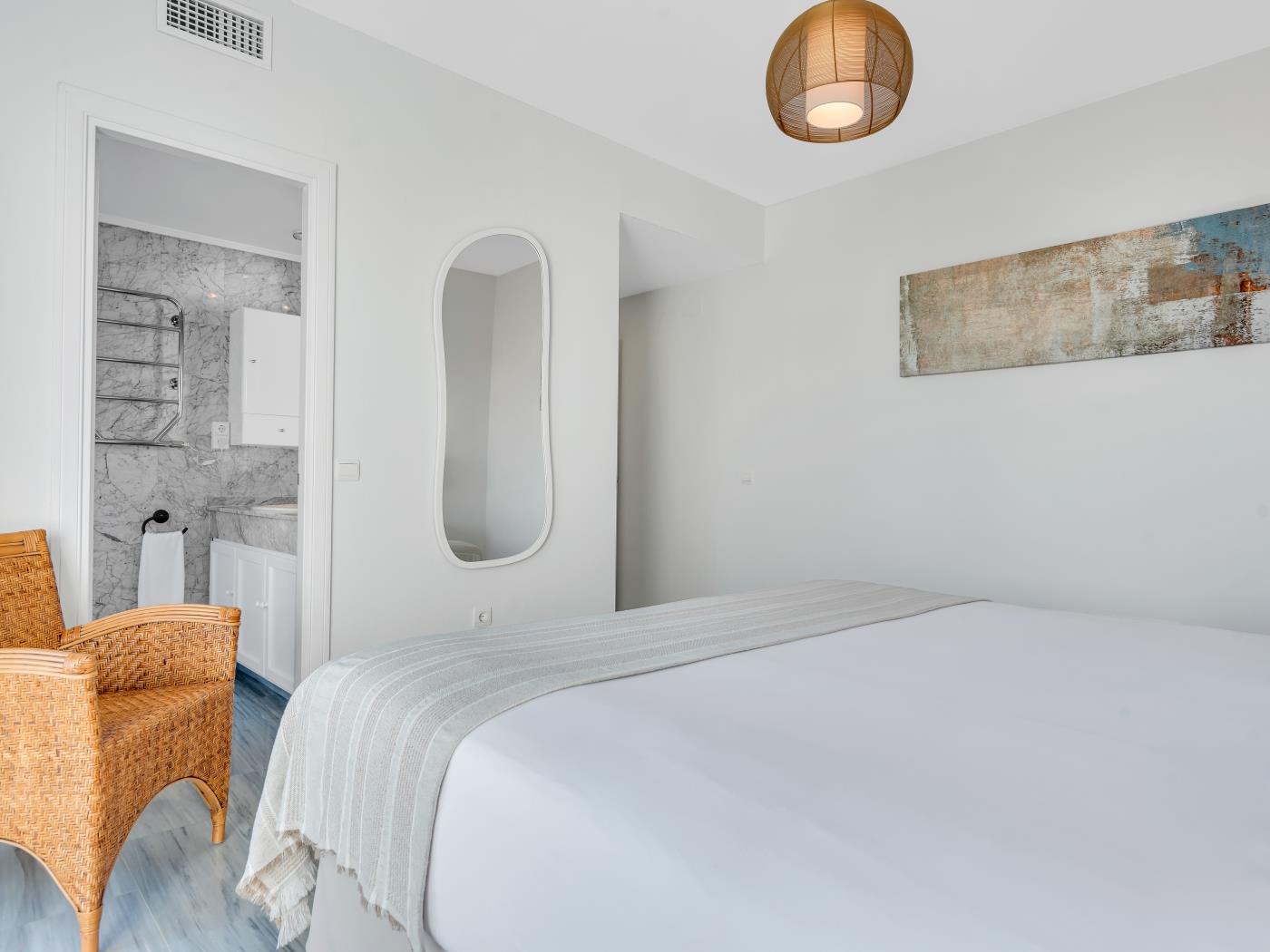 Cet appartement de 113 mètres carrés, situé au septième étage, dispose d’une grande terrasse de 28 mètres carrés avec trois espaces distincts, parfaite pour se détendre et profiter des vues sur la mer et la montagne. L’intérieur comprend un salon-salle à manger spacieux et lumineux avec accès direct à la terrasse, une cuisine entièrement équipée et une décoration moderne qui crée une ambiance chaleureuse. Avec une capacité d’accueil de 4 personnes, cet appartement est idéal pour les familles et les groupes d’amis.