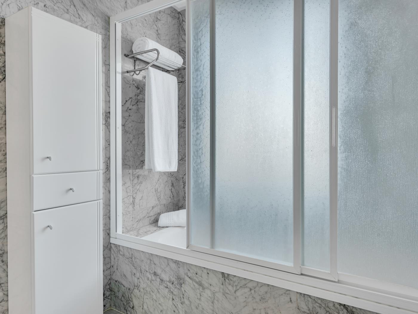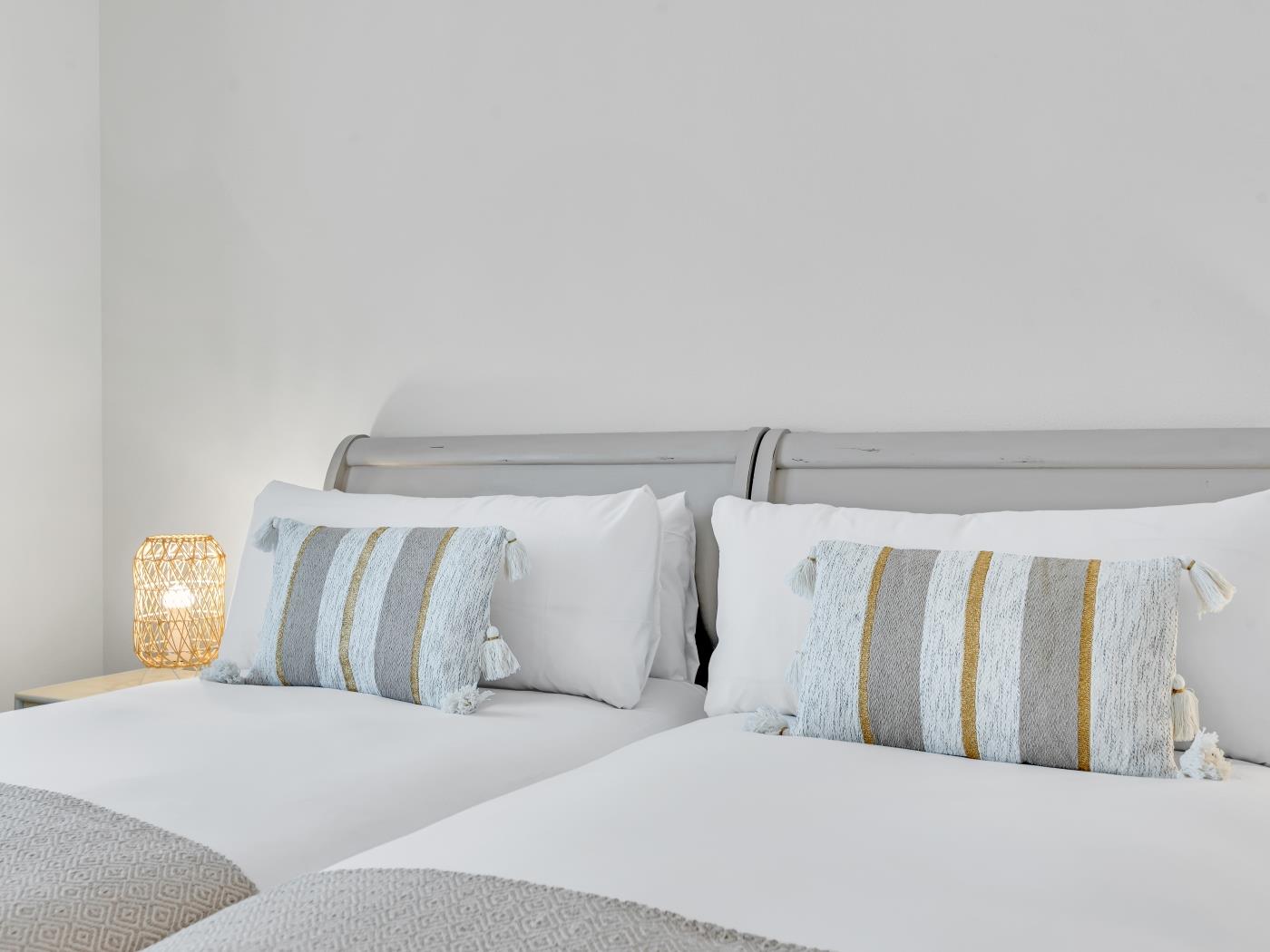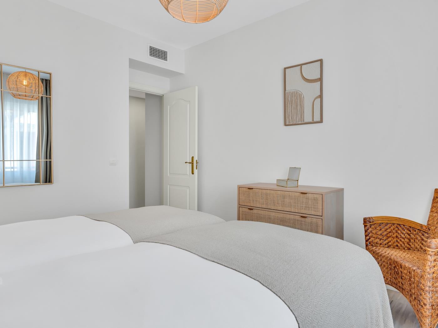 - Deuxième chambre: 2 lits simples (90 cm x 200 cm) avec une salle de bain séparée