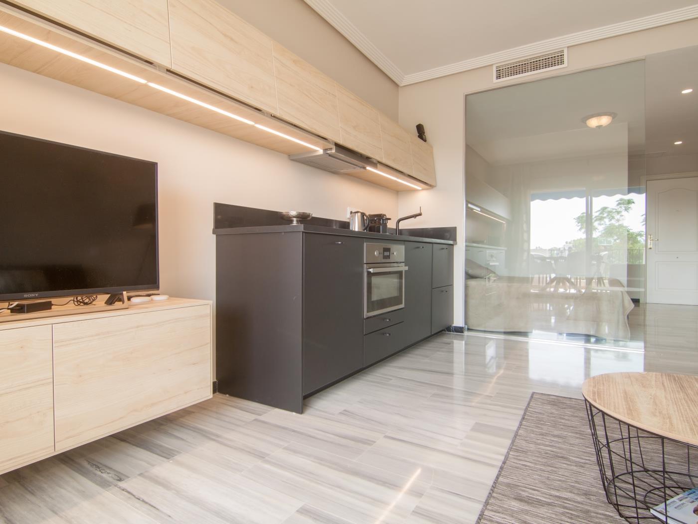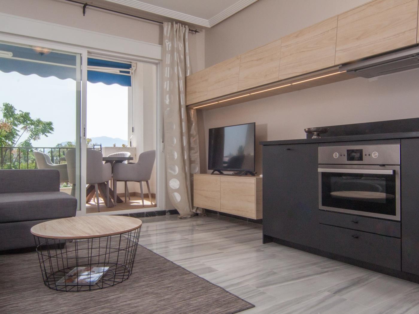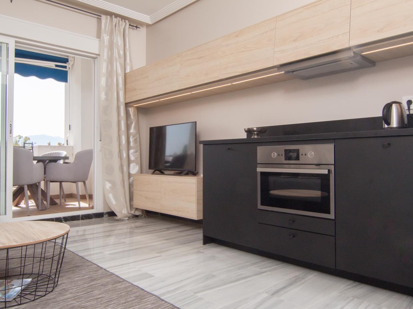 Profitez d’un séjour parfait à Puerto Banús, Marbella, dans cet élégant appartement situé dans la résidence Medina Garden. Cette propriété est parfaite pour les couples recherchant un espace moderne et fonctionnel avec le confort d’être proche de la plage et des zones de loisirs les plus exclusives de Puerto Banús.