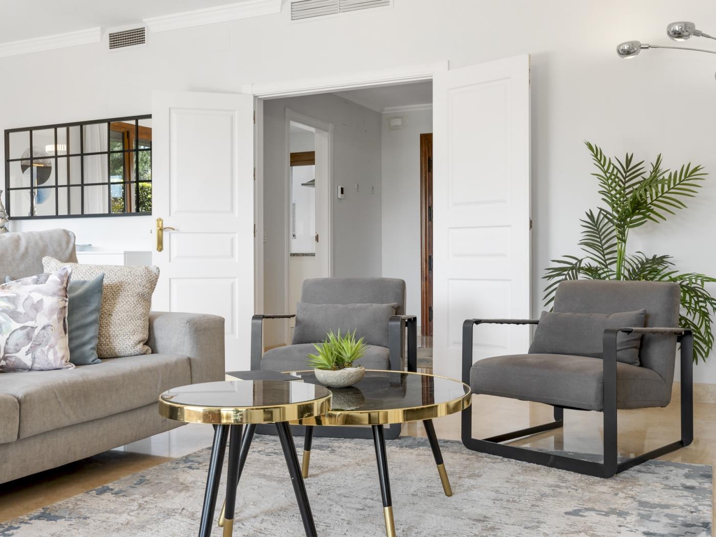 L’emplacement est tout simplement exceptionnel : au cœur de la Nouvelle Mille d’Or, entre Puerto Banús, Marbella et Estepona, à seulement 10 minutes en voiture de San Pedro de Alcántara et Benahavís,avec un accès facile à l’aéroport de Malaga (45 min), à la gare AVE María Zambrano et à des destinations exclusives comme Sotogrande.
