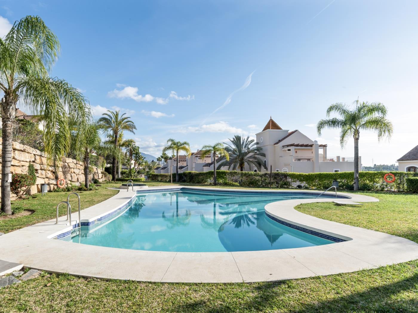 Située dans la paisible et sécurisée résidence fermée de Paraíso Hills, la propriété donne accès à une magnifique piscine commune entourée de jardins tropicaux. Le quartier résidentiel se trouve à quelques minutes des prestigieux parcours de golf El Paraíso et El Campanario Golf & Country Club, ce qui en fait un lieu de séjour idéal pour les amateurs de golf. Vous trouverez également à proximité des supermarchés, restaurants, services et lieux de divertissement, sans renoncer à la tranquillité et au confort.