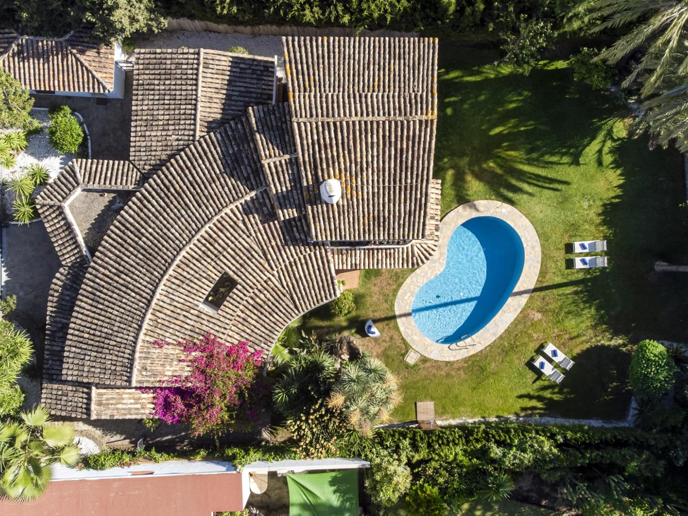 La maison principale, répartie sur deux étages, dispose d’un magnifique jardin entourant une piscine privée, créant un véritable oasis de tranquillité. L’espace extérieur spacieux est idéal pour partager des moments inoubliables en bonne compagnie.
