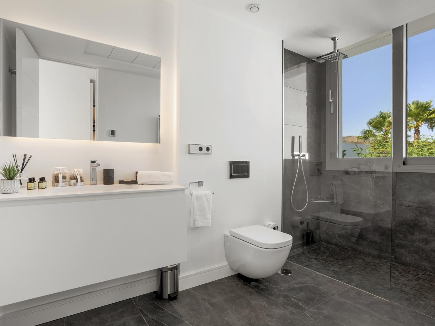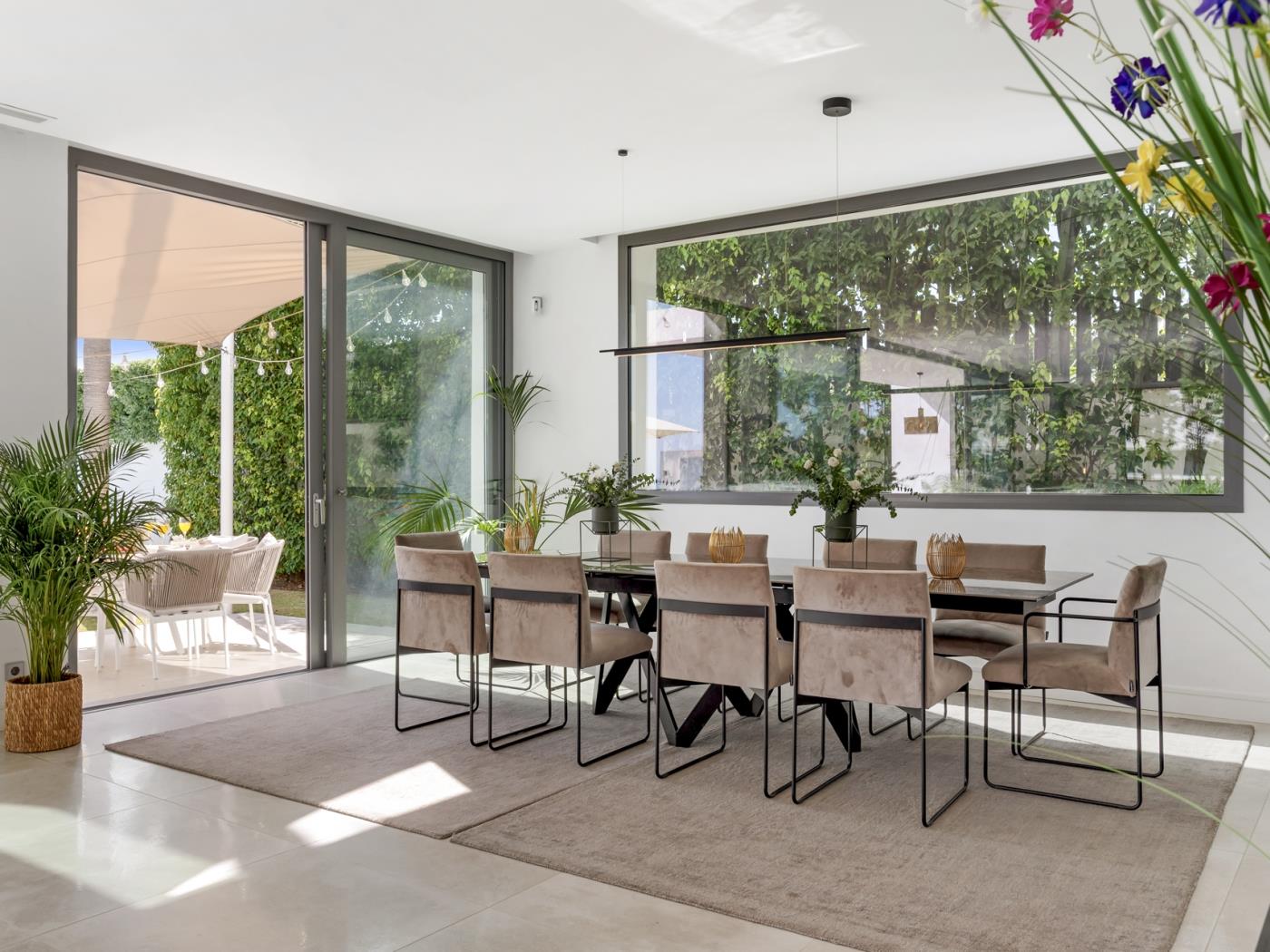 Dès votre entrée, vous serez séduit par ses vastes espaces baignés de lumière naturelle, ses hauts plafonds et son intérieur soigneusement décoré avec des matériaux haut de gamme. La villa dispose de quatre chambres élégantes, chacune avec sa propre salle de bain privative.
